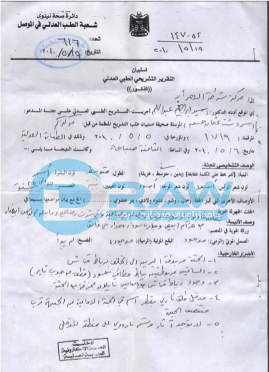 دوای تێپهڕبوونی 4 هەفتە بەسهر رووداوهكه بهناوی پزیشكی دادوهری موسڵ و به رێككهوتی 4/5/2010 راپۆرتێك لە لایەن (لیژنهی لێكۆلینهوه له دۆسیهی كوشتنی قوتابی سهردهشت عوسمان) بڵاوكرایهوه. ئارام عوسمان له بارهی راستی ناوهڕۆكی راپۆرتهكه وتی "ئاسایشی هەولێر لێدوانێکی تەمومژاویان دا و راپۆرتێکی پزیشیکیان بڵاوکردەوە، ئەو لێدوان و راپۆرتە راستی رووداوەکەی تیادا دەستکاری کرابوو بە سیناریۆیەکی ناڕاست رووداوهکەیان گێڕابووهوه، بهشێكی پێچهوانهی كاتی رووداوهكهیه و راپۆرتهكه به رێككهوتی 4ی ئایار رۆژی رفاندنهكهی نووسراوه له كاتێكدا 5ی ئایار گهیهندرابووه نهخۆشخانهكه".