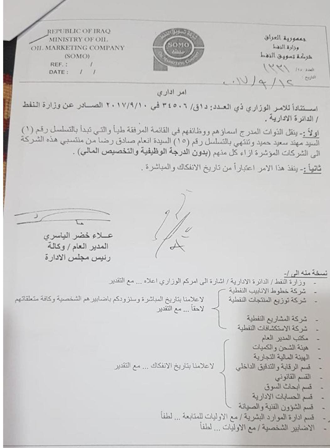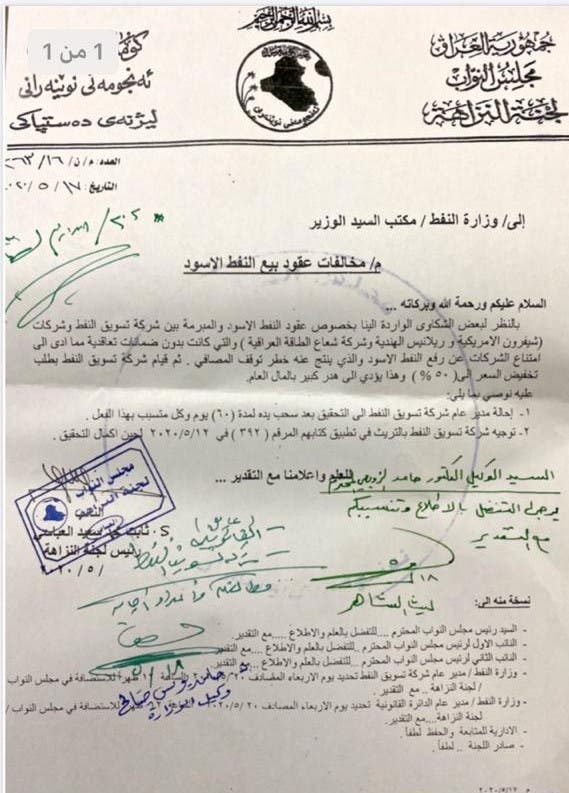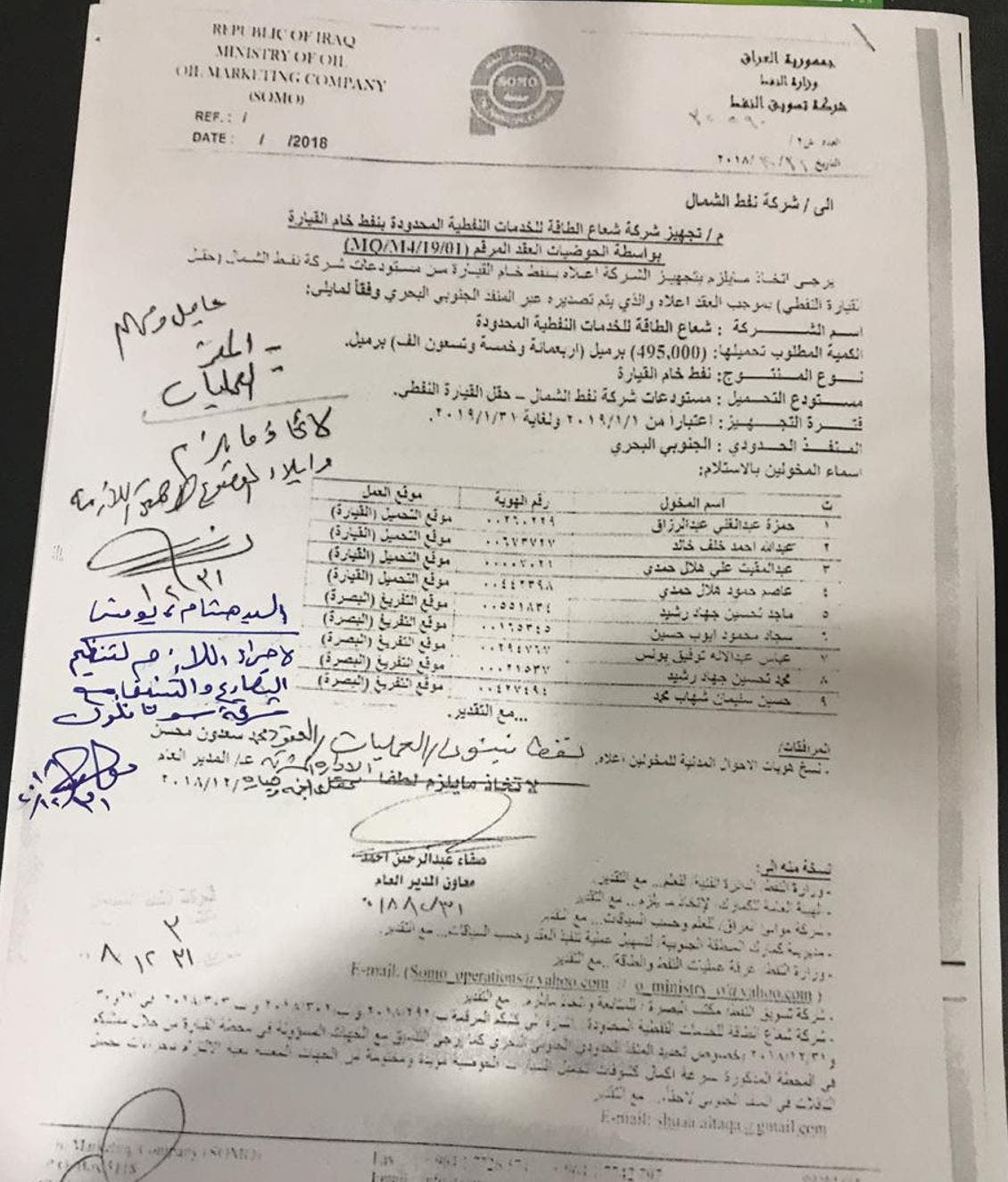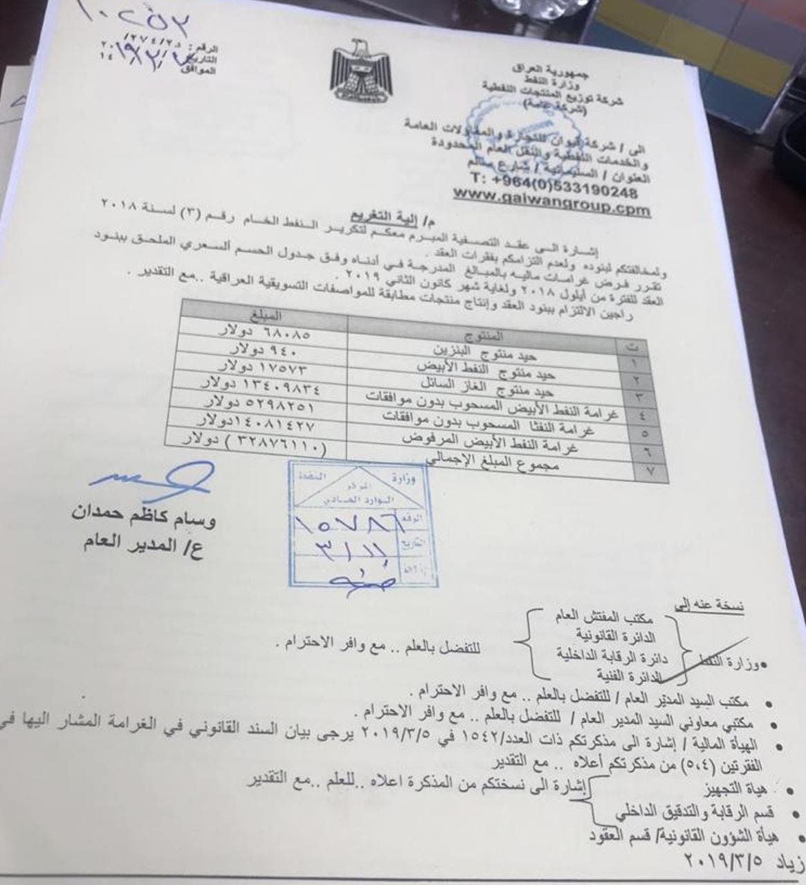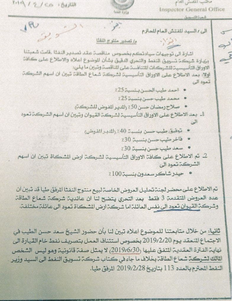 نوسینگەی پشکنەری گشتی لە وەزارەتی نەوتی عێراق لە ٢٠١٩/٤/٢٥دا ئەم بابەتەی ئاشکراکرد.