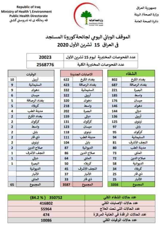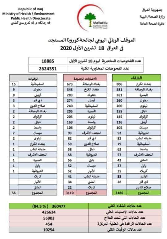 رۆژی 18/10/2020 ژمارەی مردوان (15) كەس .