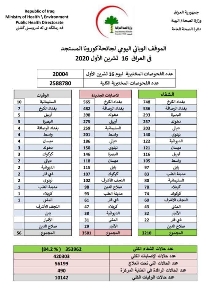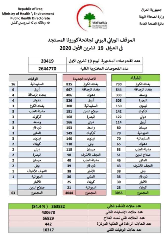 رۆژی 19/10/2020 ژمارەی مردوان (16) كەس .