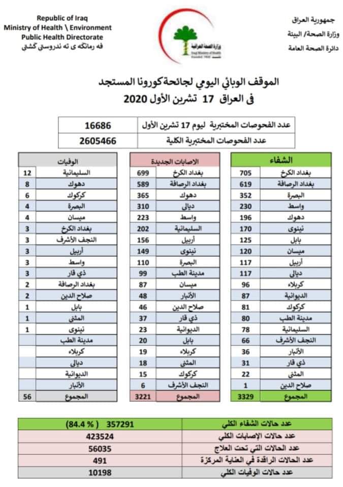 رۆژی 17/10/2020 ژمارەی مردوان (17) كەس .