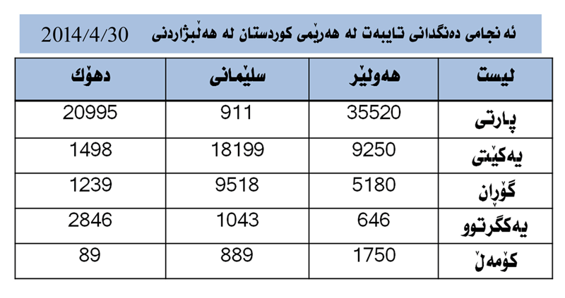 ئەنجامی دەنگدانی تایبەت لە هەڵبژاردنی  2013 و 2014