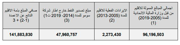 راپۆرتەكە توێژەر ئیبتیسام عەبدوللەتیف محەمەد لەسەر داواكاری پەرلەمانتار هودا سەجاد ئامادەیكردووە بە ناونیشانی " شایستە داراییەكانی هەرێمی كوردستانو بڕو داهاتی هەناردەكردنی نەوت لە دەرەوەی كۆمپانیای سۆمۆو ئاستی كاریگەری لەسەر بودجەی فیدراڵی بۆ ماوەی 2005 – 2019".
