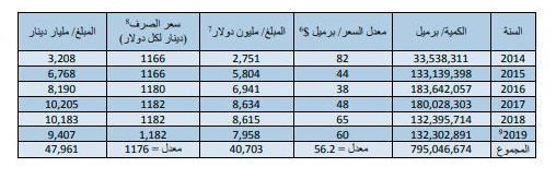 خشتەی ژمارە(4 ), بڕی هەناردەی نەوتو داهاتەكەی لە ساڵی 2014 بۆ 2019ی هەرێم روندەكاتەوە كە لە دەرەوەی كۆمپانیای سۆمۆ لە رێگەی بەندەری جەیهانی توركیاوە فرۆشتویەتی: