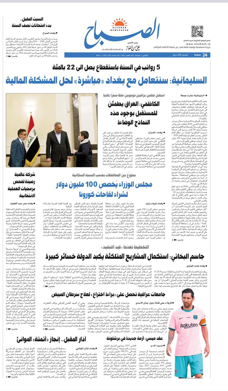 ڕۆژنامەی سەباحی زمانحاڵی حكومەتی عێراق بڵاویكردووەتەوە كە پارێزگای سلێمانی بۆ چارەسەركردنی كێشە داراییەكانی راستەوخۆ مامەڵە لەگەڵ بەغداد دەكات و لە 2020دا تەنیا (5) موچەی بە لێبڕینەوە دابەشكردووە