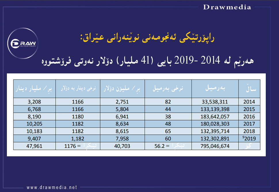 بەپێی راپۆرتی راپۆرتێكی فەرمانگەی توێژینەوەی پەرلەمانی عێراق، هەرێمی كوردستان لە (2014 بۆ 2019) بەبڕی (40 ملیارو 703 ملیۆن) دۆلار، واتا (47 ترلیۆن و 961 ملیار) دینار، نەوتی فرۆشتووە، بەڵام لەو ماوەیەدا بڕی زیاتر لە (62 ترلیۆن) دیناری پشكی خۆی لەبودجەی عێراق لەدەستداوە، چۆن ؟