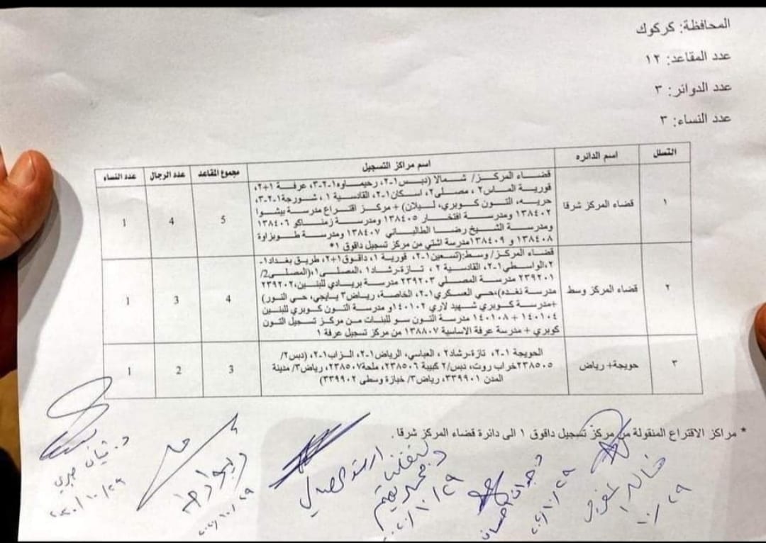 بۆ هەڵبژاردنی پێشوەختەی عێراق، بەگوێرەی یاسای نوێی هەڵبژاردنەكان، كەركوك دابەشكراوە بەسەر سێ بازنەی هەڵبژاردندا بەمشێوەیە: