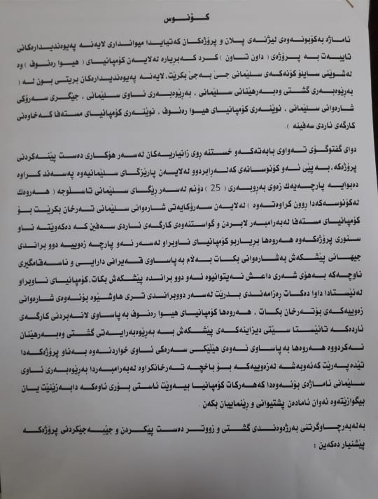 زەویی سایلۆی سلێمانی كە دەكەوێتە ناوچەیەكی ستراتیژییو گرنگەوە لەڕووی ئابورییەوە، بە سێ مەرج درا بە كۆمپانیای (هیوا رەئوف):