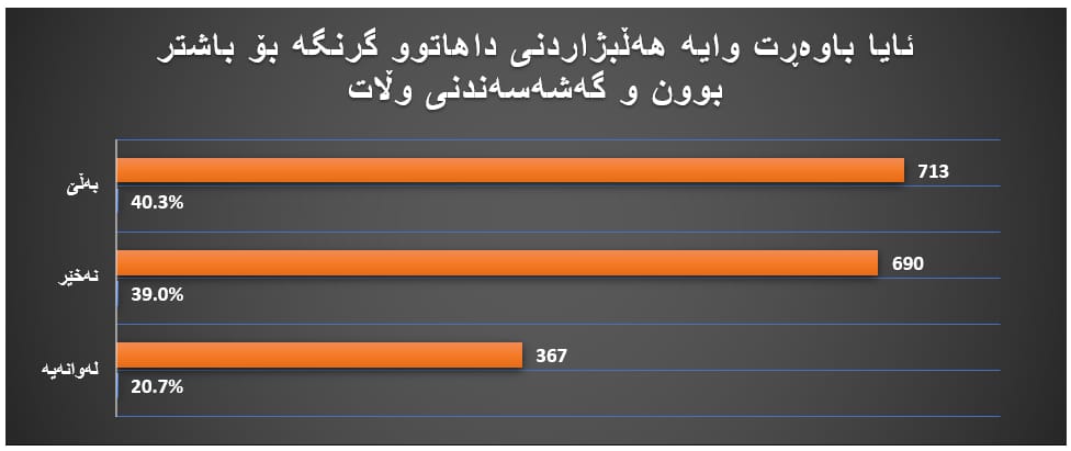 1. ئایا باوەڕت وایە هەڵبژاردنی داهاتوو گرنگە بۆ باشتر بوون و گەشەسەندنی وڵات؛ (بڕوانە چارتی ژمارە (٥))