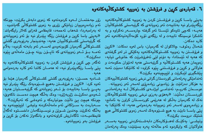 2. «یاسایى زیادهڕهوى دهرگاكانى بهڕوى جوتیاراندا داخستوه»
