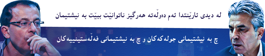 ڕەنگە ھەندێک تاکەکەس و گروپ، تەنانەت میللەتانێکیش ھەبن، پێویستیان بە نیشتیمان نەبێت، پێیانوابێت لە کوێ بیانەوێت دەتوانن بژین و ھیچ شتێک بەم یان بەو خاک و سەرزەمینەوە نایانبەستێتەوە. جیھان بە نیشتیمانی خۆیان بزانن. ڕەنگە کەسانێکیش ھەبن ھەموو ئینتیمایەک بۆ نیشتیمان وەک ئینتیمایەکی نەخۆش و وەک بیمارییەکی عەقڵیی و دەرونیی و ئینسانیی وێنابکەن. بەڵام ئەم جۆرە ھەستکردنە نە بۆ فەڵەستینییەکان ڕاستە، نە بۆ جولەکەکان. ھەردووکیان دوو گەلن جەوھەری بوون و ئامادەبونیان لە جیھاندا، بە بوونی نیشتیمانێکەوە گرێئەدەن. نیشتیمانێک بەھی خۆیانی بزانن و بتوانن وەک مرۆڤێکی کامڵ و خاوەن کەرامەت، لەناویدا بژین.