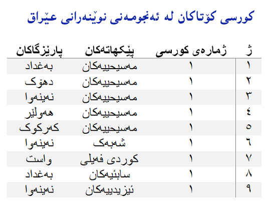 کورسی کۆتای تەرخانکراو بۆ کەمە ئاینی نەتەوەییەکان لە ئەنجومەنی نوێنەرانی عێراق