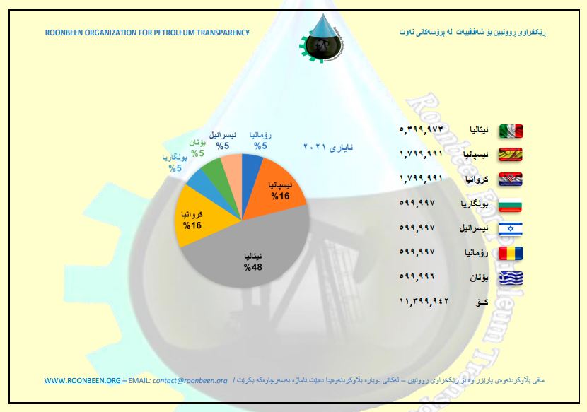 نەوتی هەرێم بە رێژەو بڕ بەم وڵاتانە فرۆشراوە: