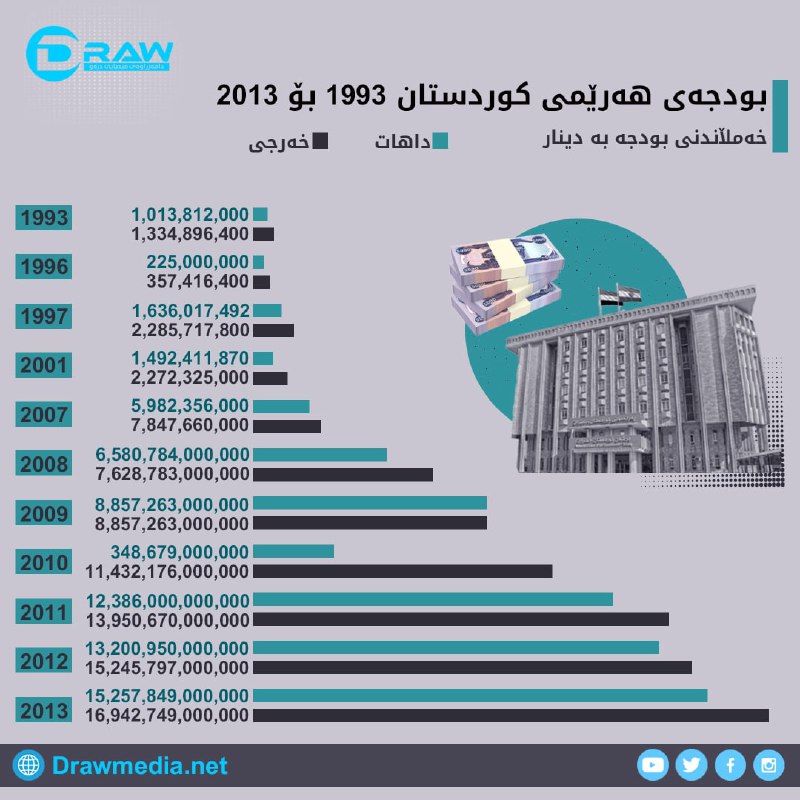بودجە له ١٩٩٣وە بۆ ٢٠١٣
