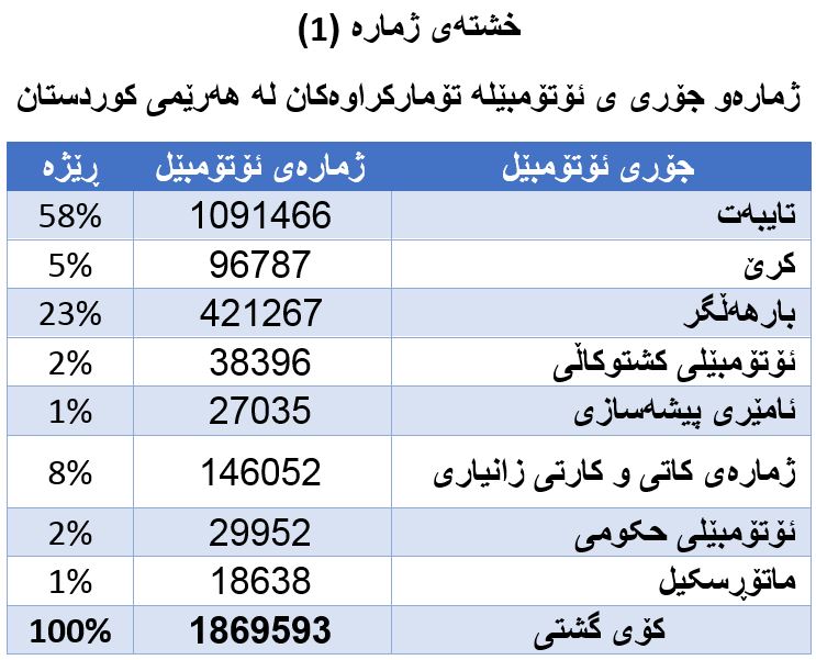ژمارەی و جۆری ئۆتۆمبێل لە پارێزگاکانی هەرێمی کوردستان