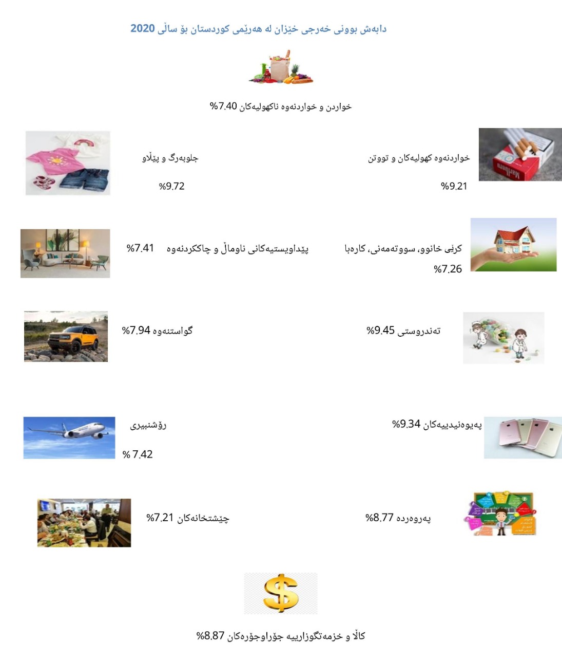 ئەو بەرزبوونەوەیە لە نرخ سەرجەم کەرەستە و خواردەمەنی و سوتەمەنی و شتومەکێکی گرتووەتەوە(بڕوانە وێنەی ژمارە (1))، ئەوەی لە خشتەکاندا هاتووە تەنها چەند نمونەیەکن، هەموو ئەو بەرزبوونەوەیەش تەنها لە دازینی بەهای دراوەوە سەرچاوە ناگرێت، بەڵکو بەشێکیشی دەگەڕێتەوە بۆ سیاسەتی ئابوری حکومەتی هەرێم لە زیاد کردنی باج و رسومات لەسەر ئەو کەل وپەلانەی هاوردە دەکرێن، سەرەڕای قۆرخکاری ئابوری لە لایەن بارزگانان و کۆمپانیا حیزبییەکانەوە.