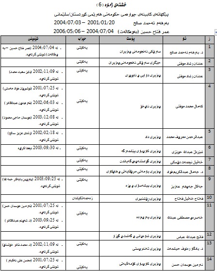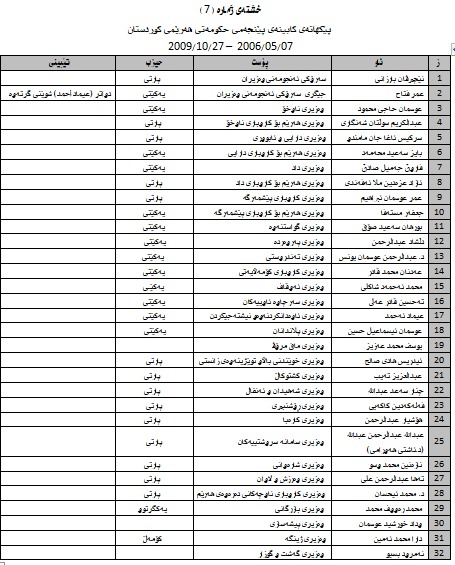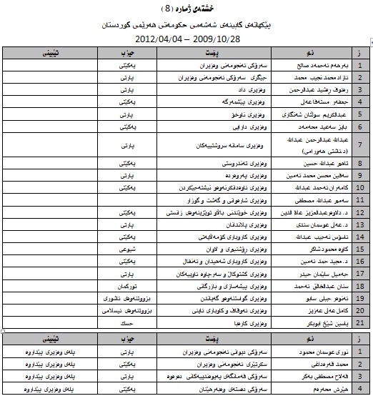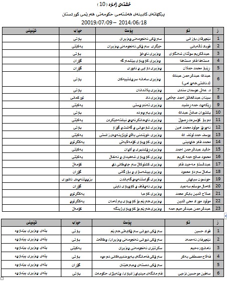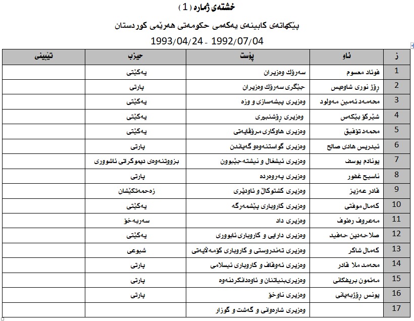 كێن ئەوانەی بە فعلی وەزیربوون ..كابینەی یەكەم تا كابینەی نۆیەم