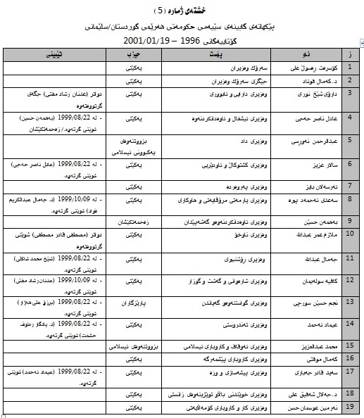 أ. كابینەی: كۆسرەت ڕەسوڵ عەلی - كۆتاییەكانی/ 1996