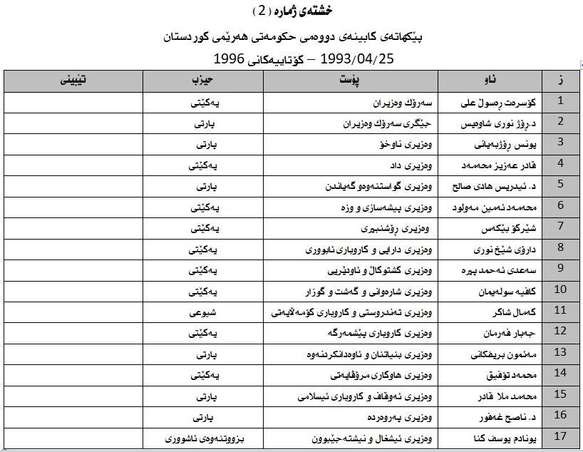 كابــــینەی دووەم (25/04/1993)