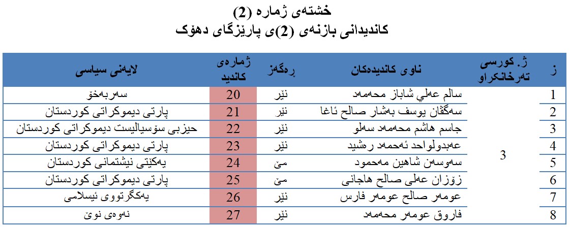 2. (یەکێتی و گۆڕان و کۆمەڵ) هیچ کاندیدێکیان نییە لەم بازنەیە.