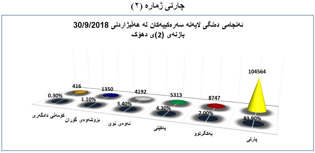 ژمارەی دەنگی لایەنە سەرەکییەکانی پارێزگای دهۆک لەسەر بنەمای هەڵبژاردنی ٣٠ی ٩ی٢٠١٨بۆ پەرلەمانی پەرلەمانی کوردستان لەم بازنەیەی هەڵبژاردن بەم شێوەیەن (بڕوانە چارتی ژمارە (2))