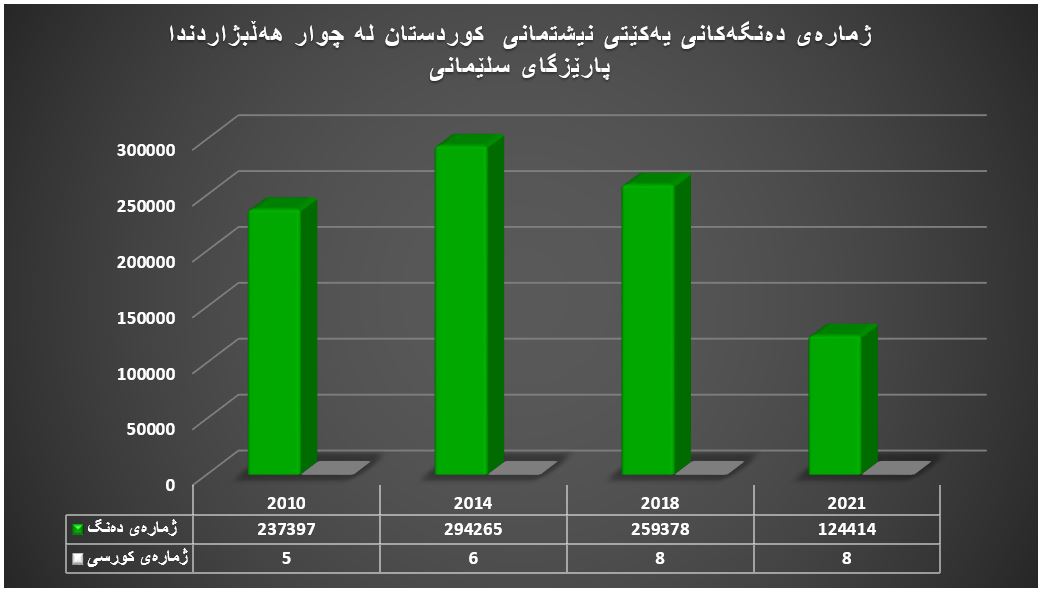 هەڵبژادنی ئەنجومەنی نوێنەرانی عێراق لە 7/3/2010 لە هەرسێ پارێزگاکەی هەرێمی كوردستان (2 ملیۆن و590 هەزار 274) کەس مافی دەنگدانیان هەبووە، بەڵام لە هەڵبژاردنی 10/10/2021، لە پارێزگاكانی هەرێمی كوردستان (3 ملیۆن و 486 هەزار و 787 ) كەس مافی دەنگدانیان هەبووە.واتە لە هەرێمی کوردستان (896 هەزار و 513) دەنگدەر لەو ماوەیە زیادی کردووە.