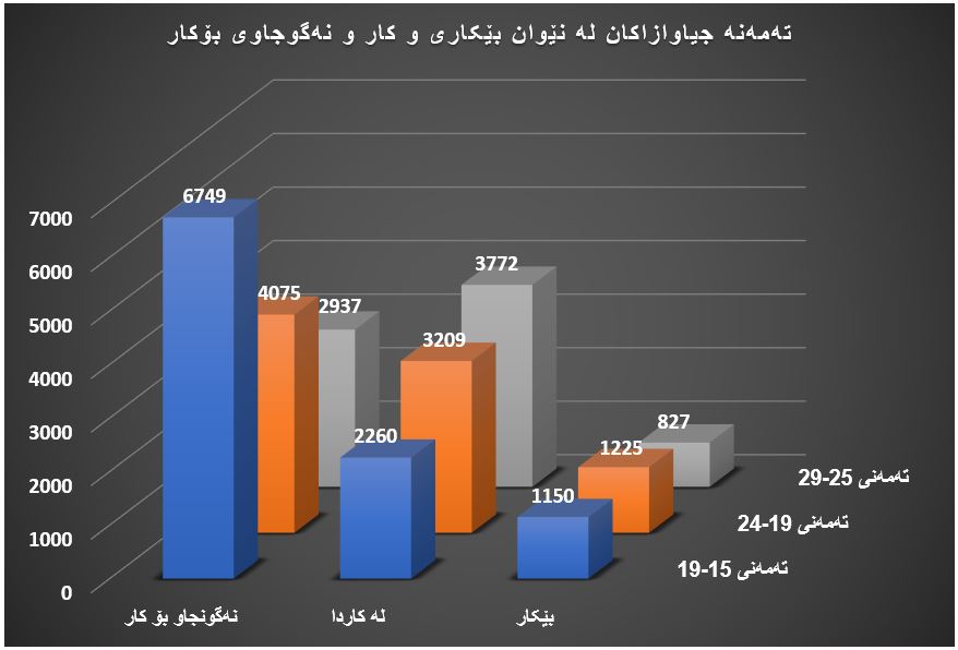 لە ساڵی 2006 بە وەرگرتنی سامپڵێک لە نێوان (89 هەزار و 658) کەس (15 هەزار و 228) کەسیان بێکاربوونە، بۆ گروپەکانی دیکەی تەمەنی گەنجان گۆڕنکاری بەسەر ژمارەکاندا هاتووە. (بڕوانە چارتی ژمارە (1))
