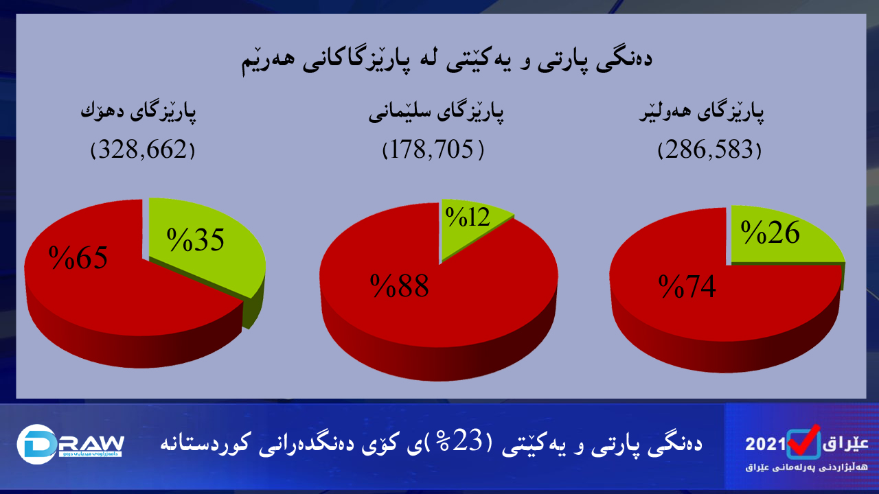 ?لە هەولێر(26%)، لە سلێمانی (12%)، لە دهۆك (35%)ی دەنگیان بە پارتی و یەكێتی داوە