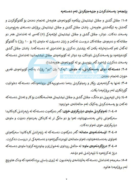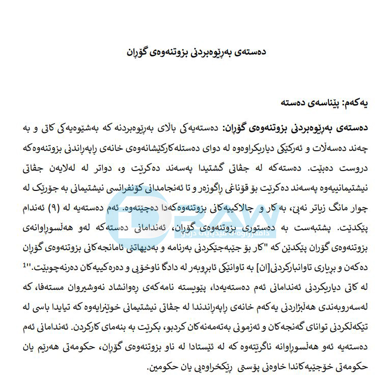 (درەو) دەقی پرۆژەی دروستكردنی (دەستەی بەڕێوەبردنی گۆڕان) دەستكەوتووە.
