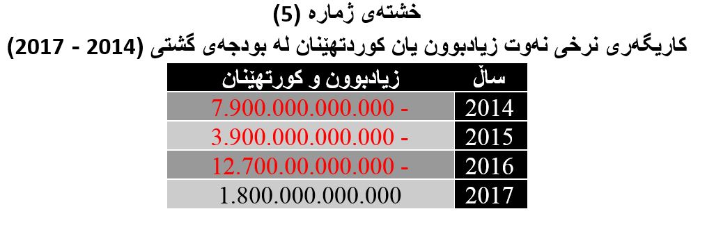 پێنجەم: کاریگەری دابەزینی نرخی نەوت لەسەر بودجەی گشتی هەرێمی کوردستان