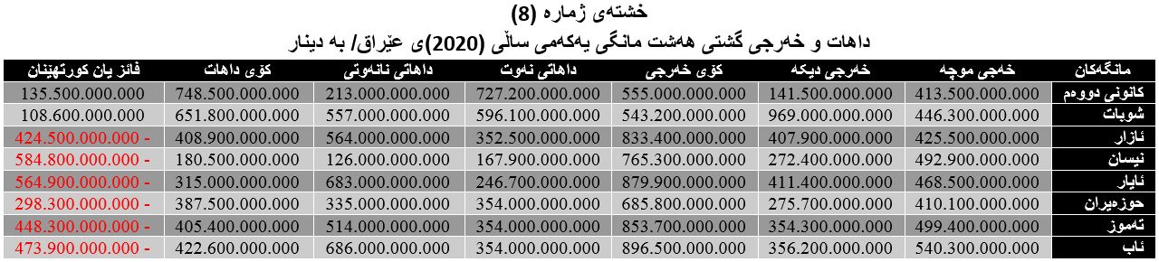 2. سێ مانگی سەرەتای 2020، هەموو مانگێک 453 ملیار لە عێراقەوە بۆ هەرێمی کوردستان هاتووە.