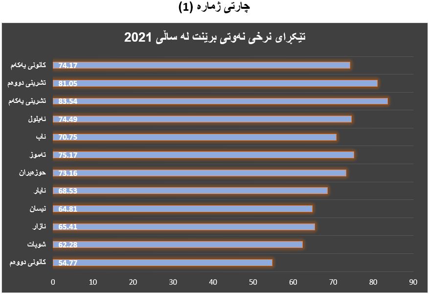 بەپێی زانیارییەكانی ماڵپەڕی Economy) Country) تێكڕای نرخی نەوتی برێنت لە بازاڕەكانی جیهان بۆ ساڵی (2021) بریتی بووە لە (70.68) دۆلاری ئەمریكی، بە جۆرێك مانگی (تشرینی یەكەمی ساڵی 2021) بەرزترین ئاستی تۆمار كردووەو تێكڕای نرخی نەوت لەم مانگەدا بریتی بووە كە (83.54) دۆلار، لە مانگی (كانونی دووەمی ساڵی 2021) نزمترین نرخی نەوت لە ساڵەكەدا تومار كراوە كە بریتی بووە لە (54.77) دۆلار. (بڕوانە چارتی ژمارە (1)