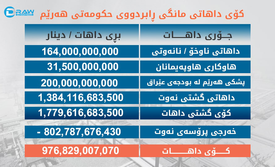 كۆی داهاتی مانگی رابردوی هەرێم ( 976) ملیار دینار بووە