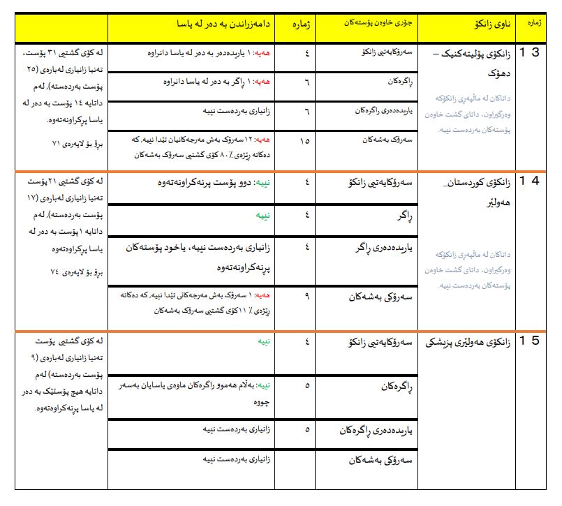 3. یاسای ژمارە (١٢)ی ساڵی (١٩٩٣)ی یاسای خوێندنی باڵا و لێكۆڵینەوەی زانستی.
