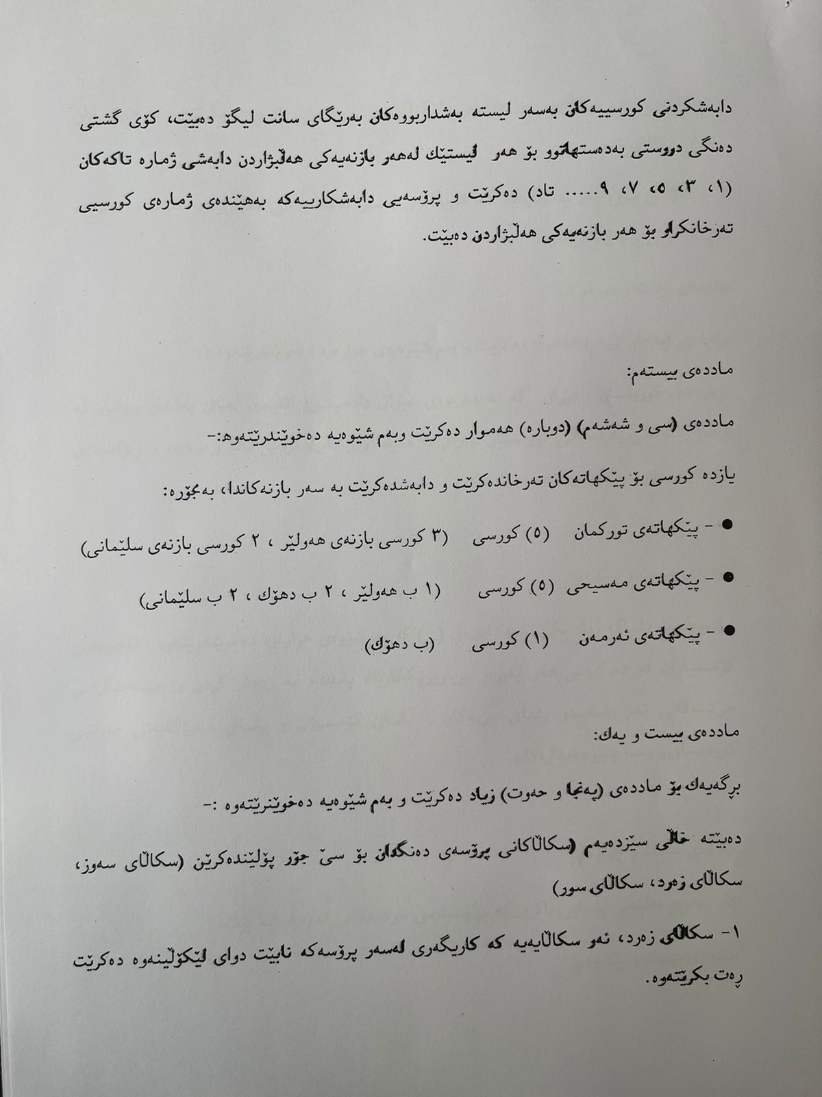 • پێكهاتەی مەسیحی: 5 كورسی (1 كورسی بۆ هەولێر، 2 كورسی بۆ دهۆك، 2 كورسی بۆ سلێمانی)