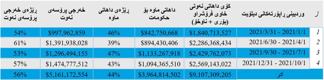 ڕۆژی (31/3/2022) کۆمپانیای دیلۆیت بۆ وردبینی پرۆسەی نەوتی هەرێمی کوردستان، ڕاپۆرتەکانی خۆی بۆ تەواوی ساڵی (2021) بڵاو کردەوە، ئەمە لە کاتێکیدا سێ مانگی ساڵی (2022) تێپەڕیووە.