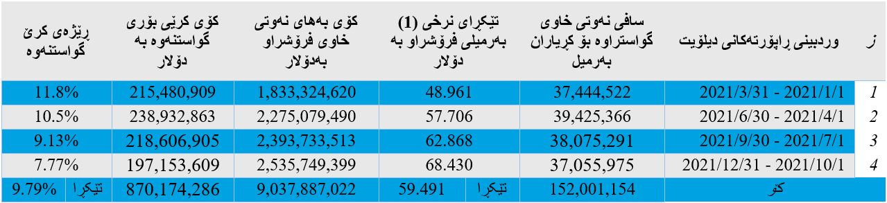 - بەرهەمی نەوت و هەناردە و بەکاربردن و داهات لە ماوەی ١ی تشرینی یەکەمی ٢٠٢١ تاکو٣١ کانونی یەکەمی ٢٠٢١؛