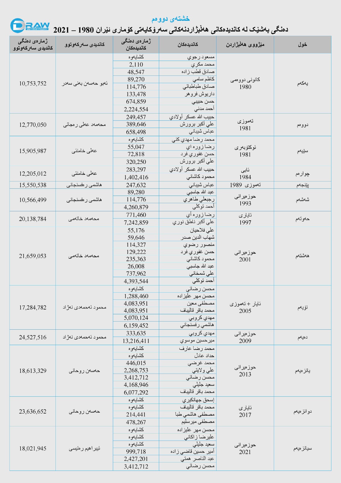 تایبەت بە مێژووی هەڵبژاردنی سەرۆک کۆمار و ڕێژەی بەشداری دەنگدەران بڕوانە (خشتەی یەکەم).