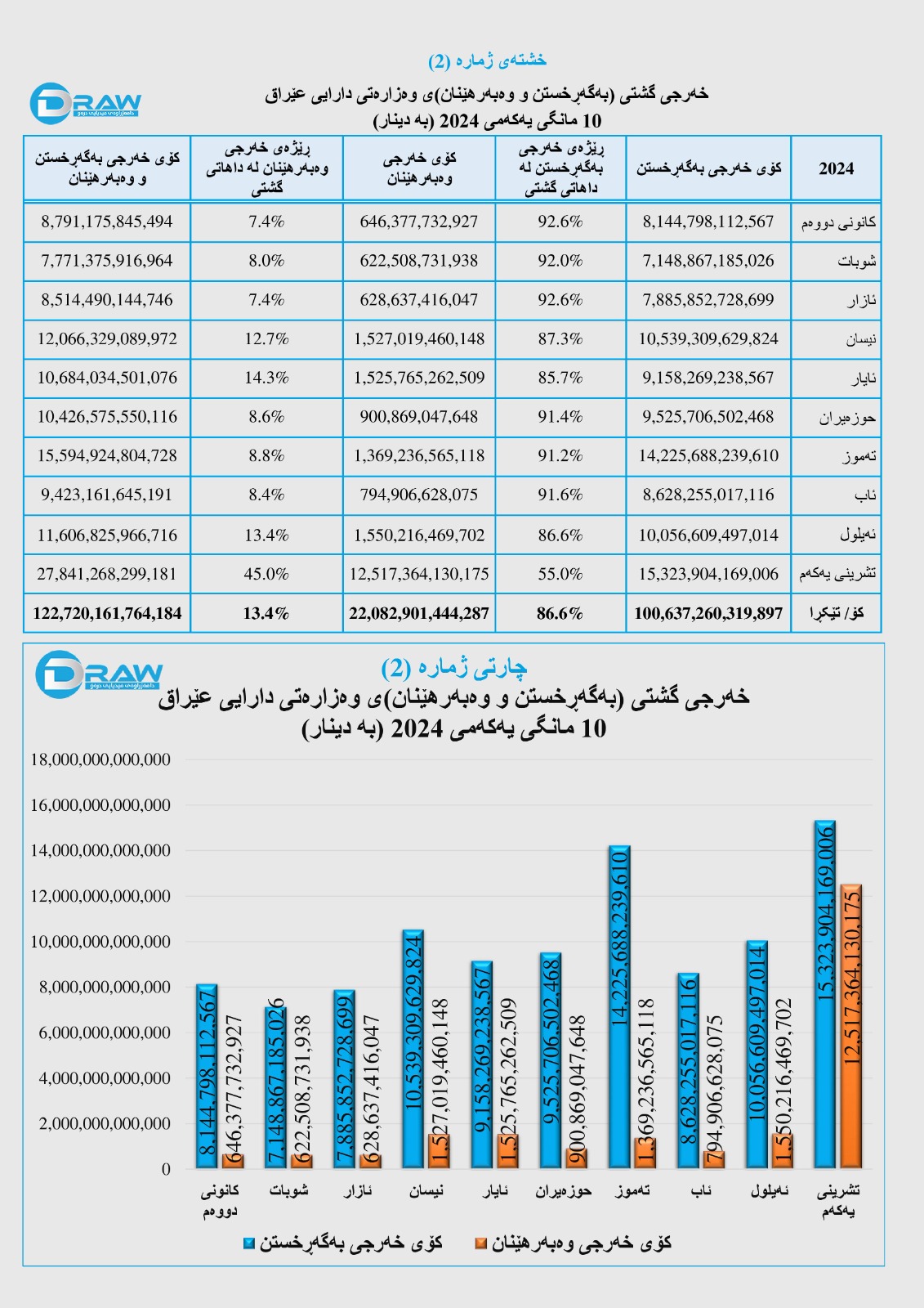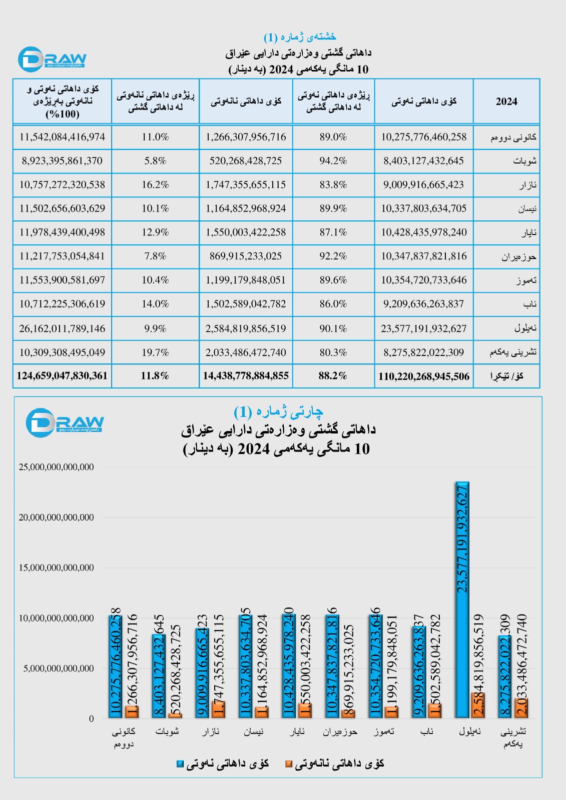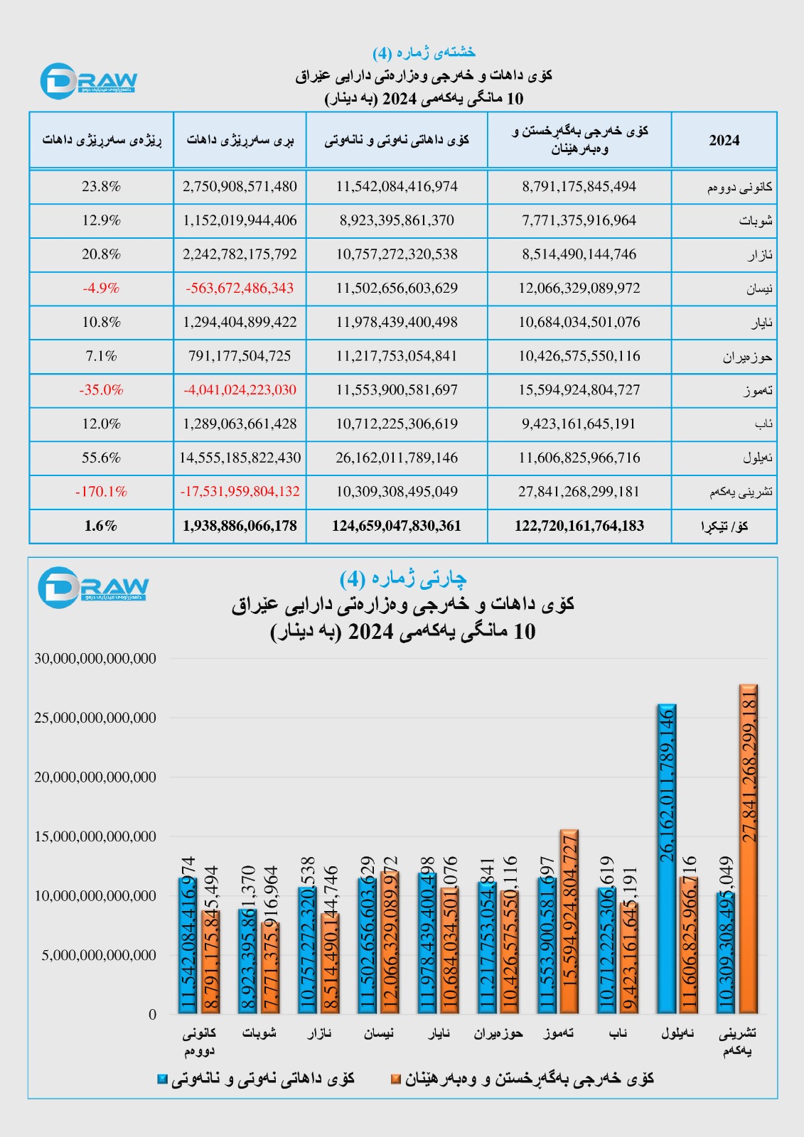 ? رۆژی (24ی 12ی 2024) وەزارەتی دارایی عێراق داهات و خەرجی خۆی بۆ دە مانگی یەکەمی ئەمساڵ بڵاوکردەوە، بەپێی ڕاپۆرتەکە؛