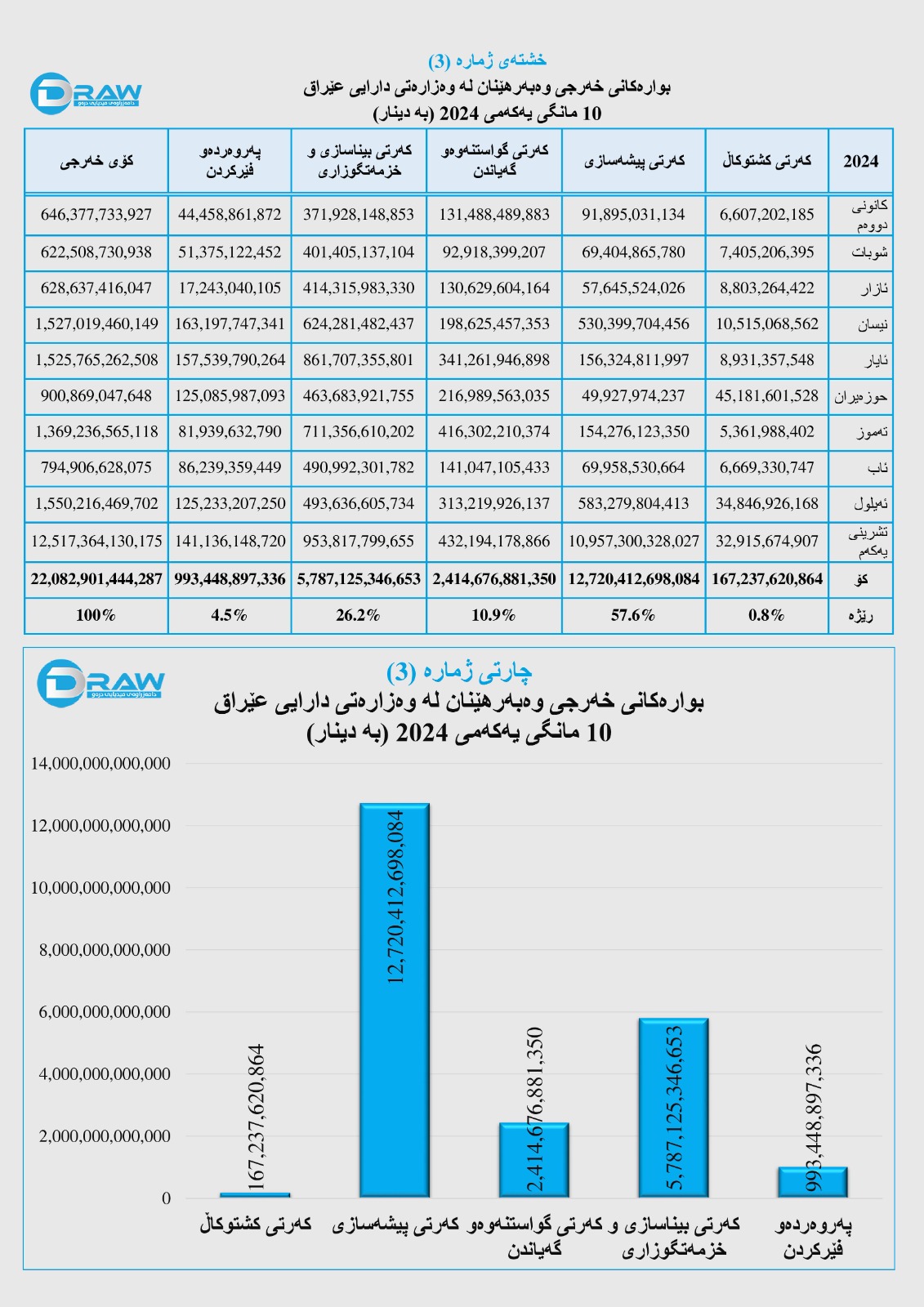 بۆ وردەکاری خەرجییەکانی وەبەرهێنان لە کەرتە جیاوازەکان لە دە مانگی یەکەمی ساڵی (2024) بڕوانە (خشتەو چارتی ژمارە (3)).