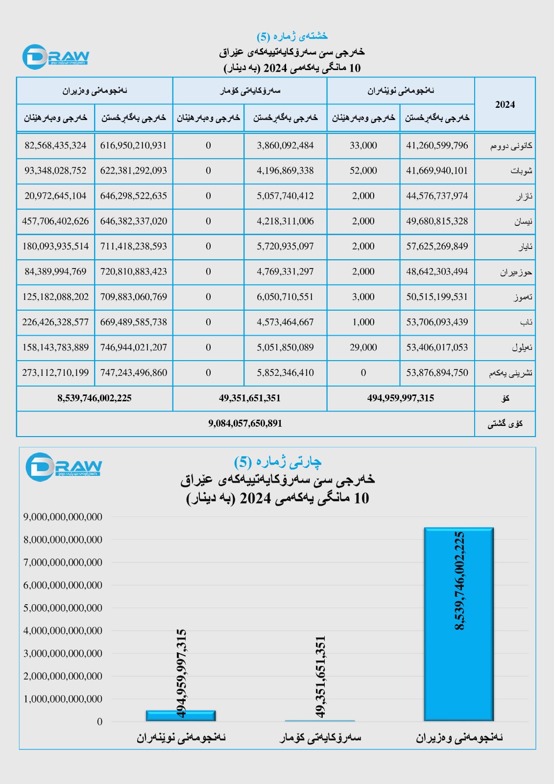 بۆ وردەکاری خەرجی سێ سەرۆکایەتییەکە لە دە مانگی یەکەمی ساڵی (2024) بڕوانە (خشتەو چارتی ژمارە (5)).