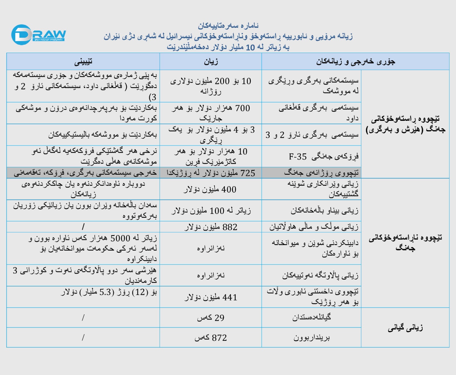 زیانە گیانی مادییەکانی ئیسرائیل لە شەڕی (12) رۆژەی لەگەڵ ئێراندا