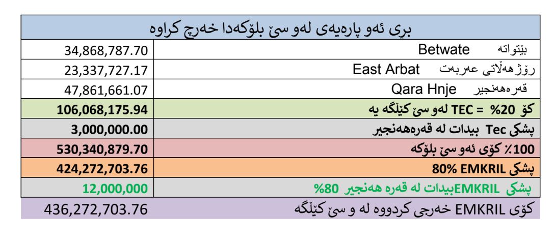 ئەو پارانەی کە خەرج کراوە: