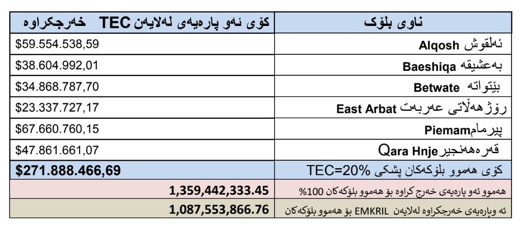 ▪️ تا بەرواری ٢٠١٦/٦/٢٧ لەو شەش کێڵگەیە بڕی ١ملیار و ٣٥٩ ملیۆن دۆلار خەرج کراوە و لەم بڕەش ١ ملیار و ٨٧ ملیۆن دۆلار ئێکسۆن مۆبیل خەرجی کردووە.