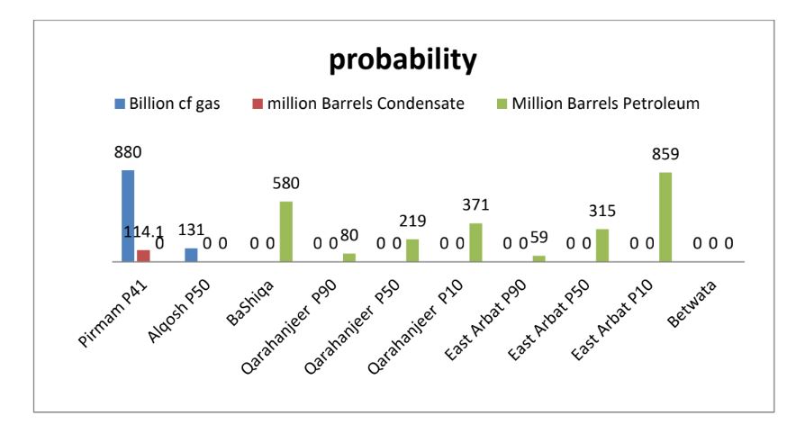 - probabilityاحتمالیP50 بۆ ئەو بڕەی لە حەشارگەکەدایە = 426 ملیۆن بەرمیل
