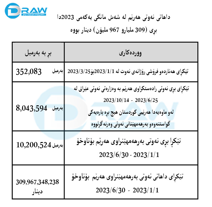 داهاتی نەوتی هەرێم لە شەش مانگی یەكەمی 2023دا