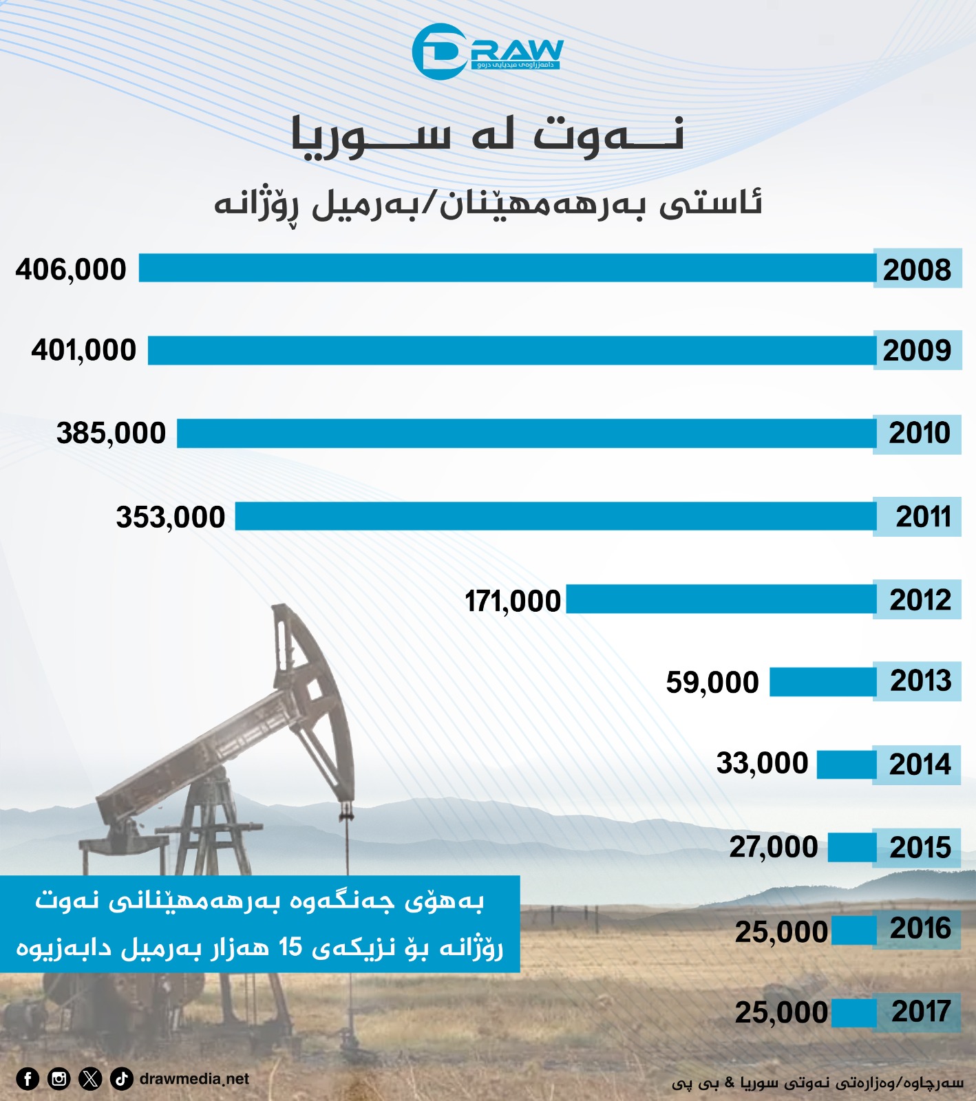 بۆ زانینی دۆخی بەرهەمهێنانی نەوت لە سوریا تەماشای ئەم گرافیكانەی خوارەوە بكەن: