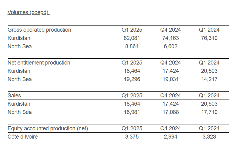 كۆمپانیای (DNO)ی نەرویژی كە لە كێڵگەی (تاوكی) لە هەرێمی كوردستان كاردەكات، داتای خۆی بۆ ئاستی بەرهەمهێنانی نەوت لە چارەكی یەكەمی 2025 لە كێڵگەكە راگەیاند.