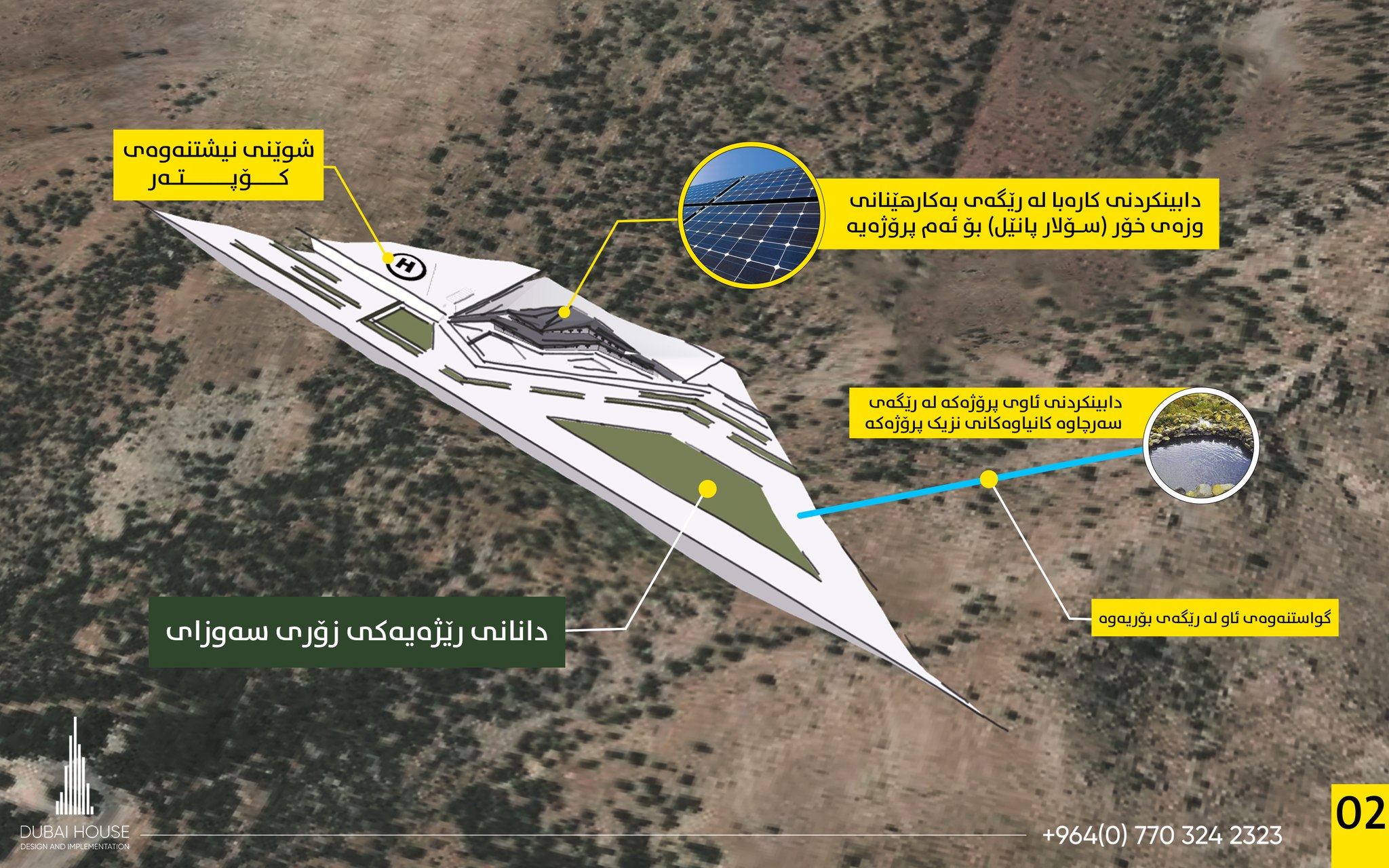 کۆمپانیای دوبەی هاوس Dubai House دوبەی هاوس لەڕێگەی پەیجی خۆیەوە لەسەر تۆڕی فەیسبوک ڕێکلامی بۆ ڤێلایەکی جیاواز لە پارێزگای سلێمانی لە سەر شاخی پیرەمەگرون کردووە. کۆمپانیاکە نووسیویەتی کە بۆ یەکەمجارە لەسەر ئاستی کوردستان ڤێلایەک بەم شێوەیە دیزاین بکرێت. (هەڵبەتە پێچەوانەکەشی ڕاستە بۆ یەکەمجارە وێرانکاریی لە کوردستانداو، بەم شێوەیە دیزاین بکرێت)
