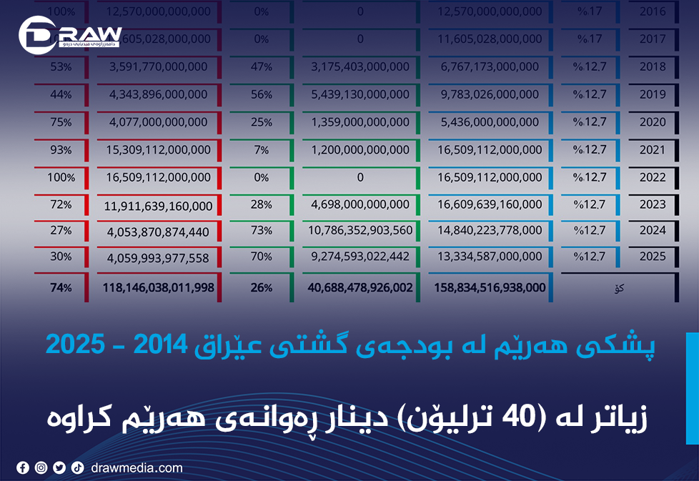 The KRG did not return any revenue to the federal government in 2023. However, for 2024 and 2025, it returned a combined 598 billion 515 million dinars: